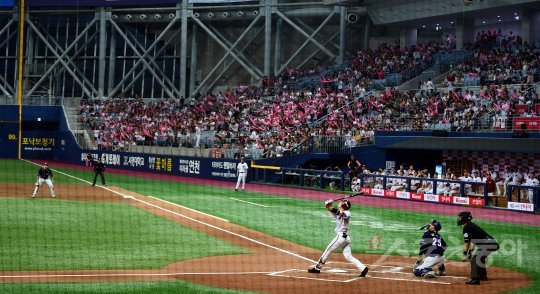11일 서울 고척스카이돔에서 ‘2016 타이어뱅크 KBO리그’ 넥센 히어로즈와 두산 베어스의 경기가 열렸다. KBO리그 역대 최다관중기록(7,360,530명)에 51,595명을 남겨두고 고척돔에 많은 야구팬들이 경기장을 찾아 응원을 펼치고 있다.