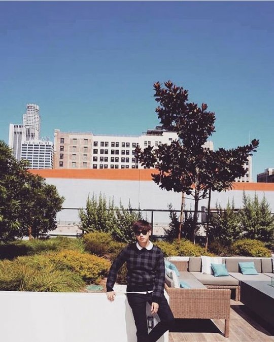 공개된 사진 속 장소는 LA의 유명 호텔로, 에릭남은 호텔 정원 옆에 기대어 사진을 찍었다. 그는 흰색 셔츠에 체크무늬 니트를 걸쳐 입고 선글라스를 매치해 멋스러움을 더했다.