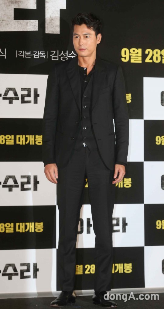 배우 정우성이 21일 오후 서울 성동구 왕십리 한 멀티플렉스관에서 열린 영화 '아수라' 언론시사회에서 포토타임을 하고 있다.