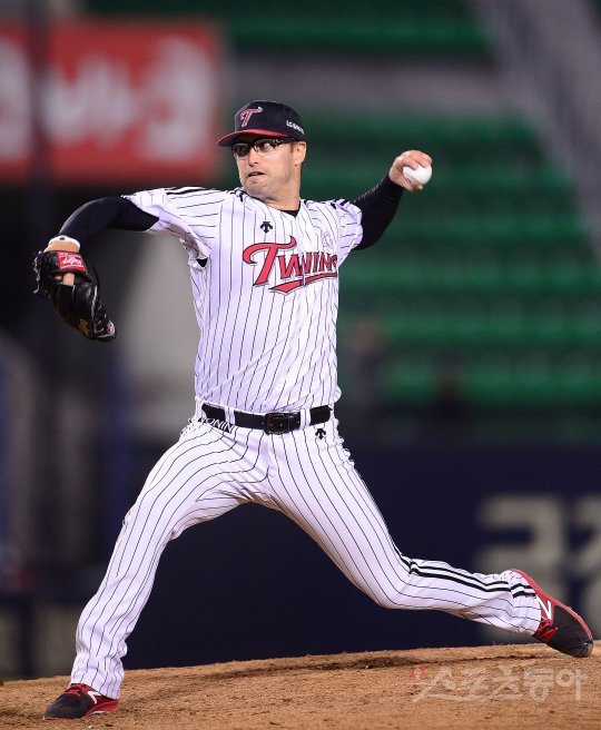 21일 잠실야구장에서 ‘2016 타이어뱅크 KBO 리그’ LG 트윈스와 NC 다이노스의 경기가 열렸다. 7회초 2사 LG 선발 허프가 NC 손시헌을 상대로 힘차게 공을 던지고 있다.