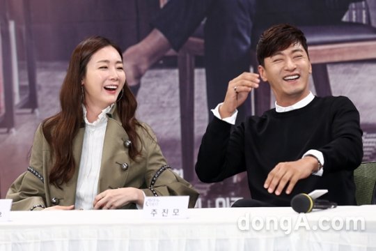 배우 최지우(왼쪽), 주진모가 22일 오후 서울 마포구 상암MBC에서 열린 MBC 새 월화드라마 '캐리어를 끄는 여자' 제작발표회에 참석해 기자간담회를 하고 있다.