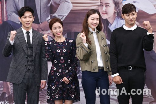 배우 이준(왼쪽부터), 전혜빈, 최지우, 주진모가 22일 오후 서울 마포구 상암MBC에서 열린 MBC 새 월화드라마 ‘캐리어를 끄는 여자’ 제작발표회에 참석해 포토타임을 하고 있다. 동아닷컴 방지영 기자 doruro@donga.com