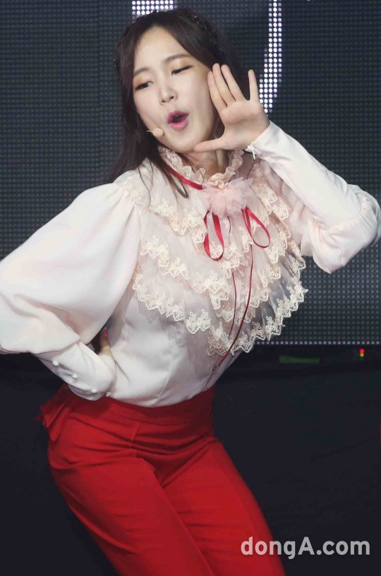 걸그룹 크레용팝의 초아가 23일 오후 서울 마포구 예스24 무브홀에서 열린 첫 정규앨범 'Evolution pop_Vol.1' 쇼케이스에서 신곡 무대를 선보이고 있다.