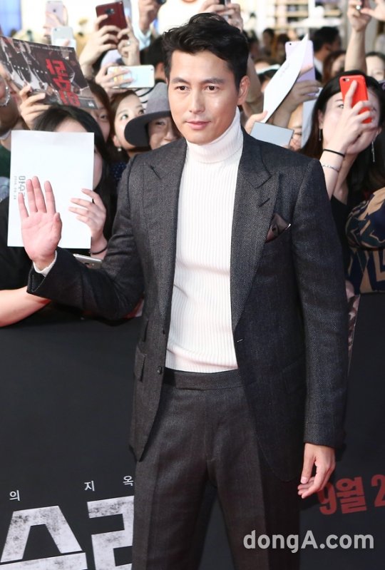 배우 정우성이 23일 오후 서울 영등포구 영등포타임스퀘어에서 열린 영화 '아수라' 레드카펫 행사에 참석해 이벤트를 진행하고 있다.