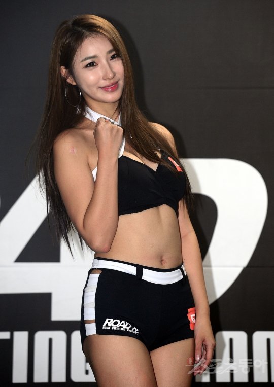 24일 서울 중구 장충체육관에서 ‘XIAOMI ROAD FC 033’이 열렸다. 로드걸 임지우가 상큼한 미소를 지으며 포즈를 취하고 있다.