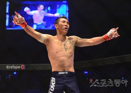 24일 서울 중구 장충체육관에서 ‘XIAOMI ROAD FC 033’이 열렸다. 제3경기 닌딘에르덴과 기원빈의 라이트급 경기에서