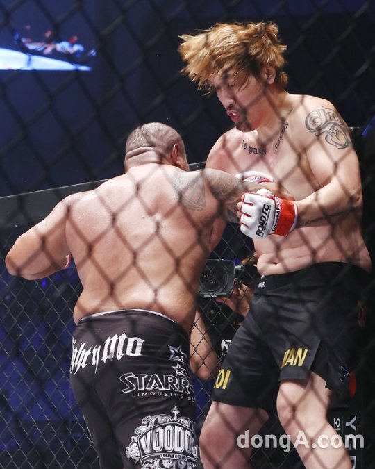 파이터 최홍만과 마이티 모가 24일 오후 서울 중구 장충체육관에서 열린 '로드FC 033'에 참석해 경기를 펼치고 있다.