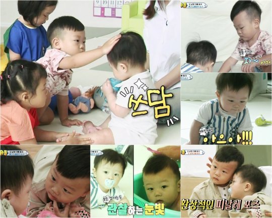 낮잠에서 깬 대박은 밖에서 자신을 향해 전속력으로 기어오는 윤서를 발견하곤, 잠투정도 잊은 채 재빨리 침대에서 일어나는 의젓한 모습을 보여줬다. 이어 대박은 윤서에게 자신이 소중히 아끼는 장난감까지 양보하며 남다른 동생 사랑을 보여줘 엄마 미소를 자아냈다.