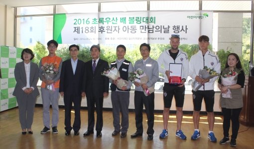 프로축구 K리그 클래식 울산현대축구단이 24일(토) 오전 10시 현대예술관에서 열린 초록우산 어린이재단 울산지역본부의 ‘제 18회 후원자·아동 만남의 날’ 행사에서 울산광역시로부터 표창패를 수상했다. 이번 수상은 이날 행사를 개최한 초록우산 어린이재단의 추천으로 이뤄졌다.