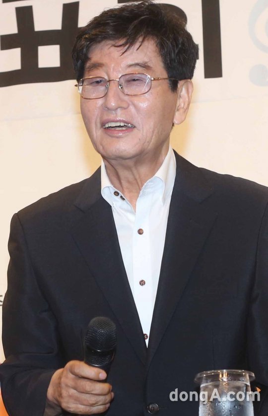 원로 작사가 조운파가 26일 오전 서울 반포 팔레스호텔에서 열린 '조운파 사랑 톡 콘서트 '기자회견에서 인사말을 하고 있다.