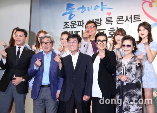 26일 오전 서울 반포 팔레스호텔에서 열린 '조운파 사랑 톡 콘서트 '기자회견에서 출연진이 포토타임을 하고 있다.