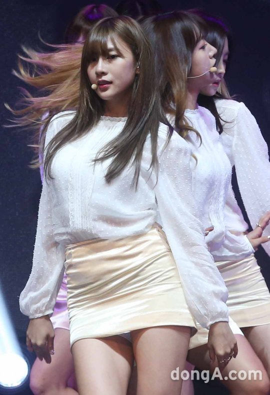 걸그룹 에이핑크의 오하영이 26일 오후 서울 광진구 건국대학교 새천년기념관에서 열린 세번째 앨범 'Pink Revolution' 쇼케이스에서 화려한 무대를 선보이고 있다.