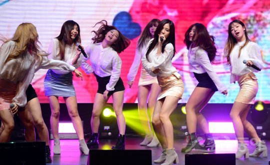 1년 2개월여 만에 완전체로 컴백한 에이핑크가 공연을 선보이고 있다.