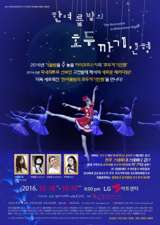 스테파니의 이색적인 1인 2역 연기와 안무가 지우영의 독특한 연출로 만들어지는 ‘2016 한여름밤의 호두까기 인형’은 10월 18일(화) ~ 19(수) 양일간 LG아트센터 무대에서 진행 되며, 공연의 수익금은 전국의 사각지대에 있는 80만 명의 경계선지능 청소년들을 위해 쓰일 예정이다.