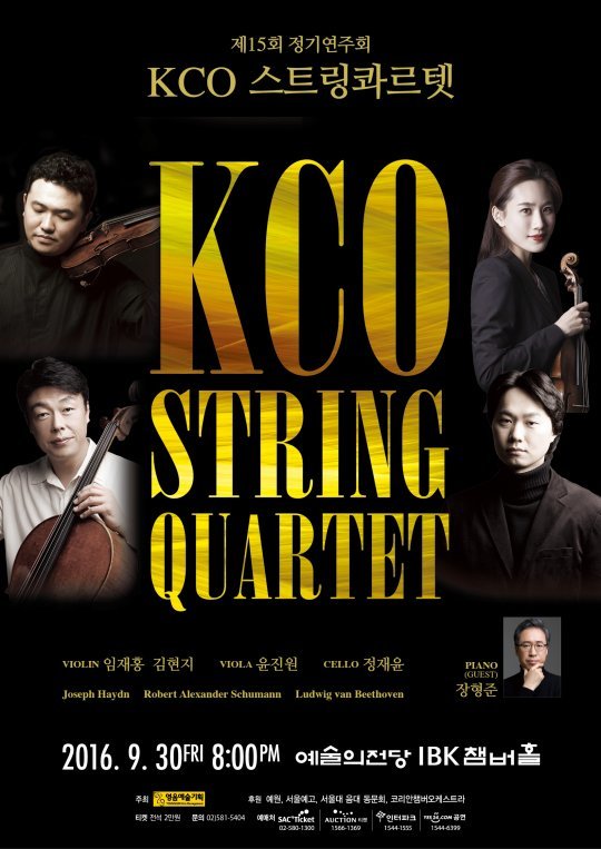 KCO 스트링콰르텟의 열다섯 번째 정기연주회가 9월 30일(금) 오후 8시 서울 서초동 예술의전당 IBK챔버홀에서 열린다.