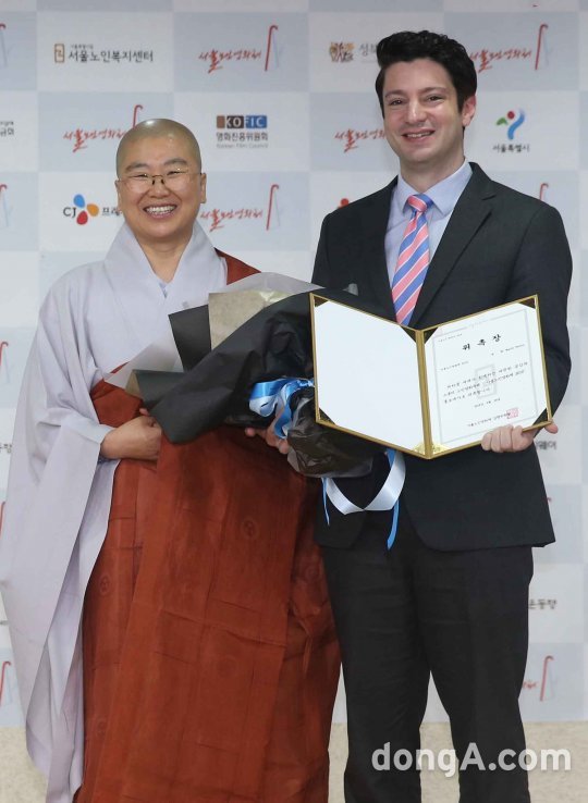 마크 테토가 29일 오전 서울 노인복지센터에서 열린 제9회 서울노인영화제 홍보대사 위촉식에서 위촉장을 받고 있다.