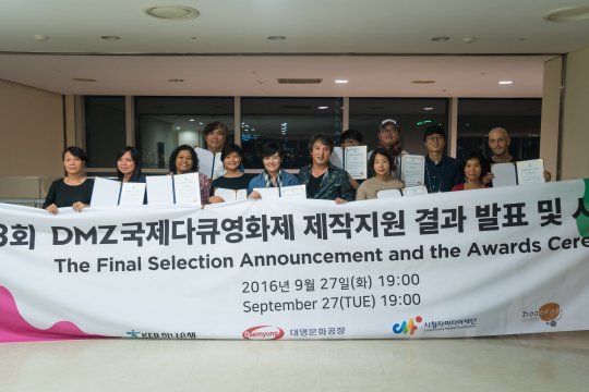 제작지원 프로그램은 장편다큐, 대명문화공장펀드, DMZ프로젝트, 신진작가프로젝트, 참가상 등 총 4개 부문 17편이 선정됐다. 특히 지원대상 국가가 아시아 지역 제작자로 확대함에 따라 전체 수상작의 3분의 1 이상인 6편이 외국 작품으로 꾸려졌다. 제작 국가는 베트남, 인도네시아, 필리핀, 조지아, 인도 등이다. 이들 작품은 1천500만 원에서 2천500만 원씩의 상금을 지원받을 방침이다.