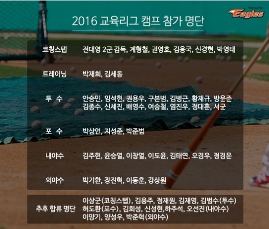 한화이글스는 이번 교육리그 참가를 통해 선수단에게 실전 경험을 유지할 수 있도록 하고, 내년 시즌 활약이 기대되는 선수들을 발굴하는 작업을 이어갈 계획이다.