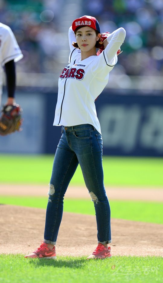 3일 서울 잠실야구장에서 열릴 ‘2016 타이어뱅크 KBO 리그’ 한화이글스와 두산베어스 경기 전 탤런트 김규리가 시구를 하고 있다.