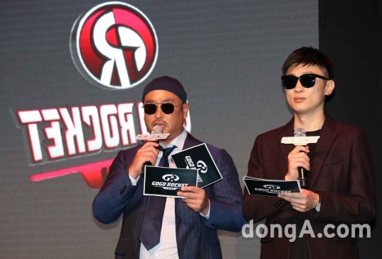 가수 길(왼쪽)과 프라이머리가 5일 오전 서울 중구 cel스테치이제어 열린 고고로켓 씨스타 데뷔 쇼케이스에 참석해 인사말을 하고 있다.