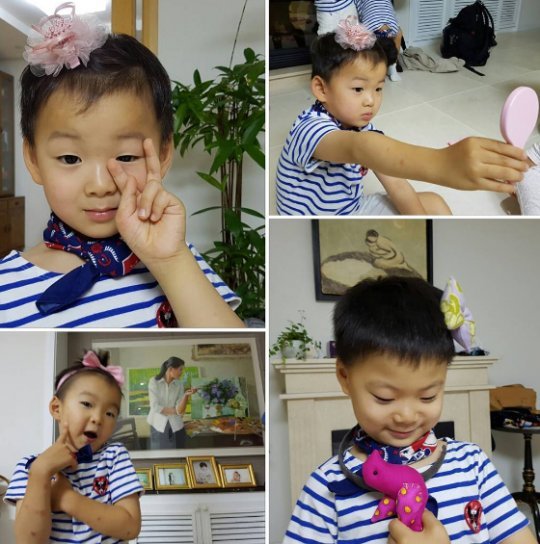 송일국은 5일 자신의 SNS에 “고모 집에서 동생 민서 머리핀으로 예쁜 짓 하는 대한민국만세~딸을 낳을 때가 되었나”라는 글과 함께 삼둥이의 근황을 공개했다.