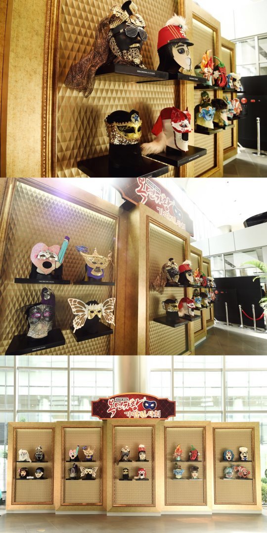 이 곳에는 복면가왕 첫 가왕 ‘황금락카 두통썼네’(루나)부터, 시대를 풍미한 ‘화새앙실 클레오파트라’(김연우), 역대급 가왕 ‘우리동네 음악대장’(하현우)를 비롯해서 역대 가왕들과, 가왕의 자리는 놓쳤지만 화제가 된 출연자들의 가면 20여 개가 전시돼 있따.