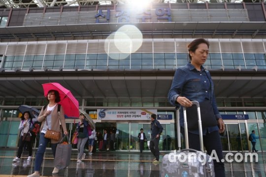 제18호 태풍 차바의 영향으로 5일 오후 서울역에서 부산역으로 향하던 KTX의 운행이 신경주역에서 중단돼 승객들이 불편을 겪고 있다.
