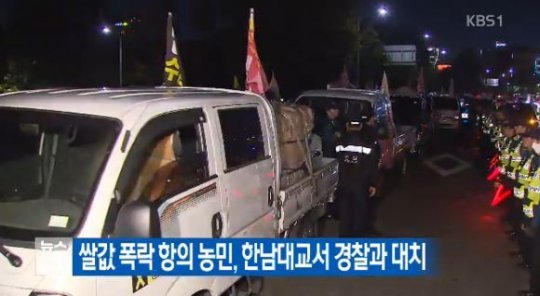 경찰은 전농 측이 트럭에 싣고 온 나락 3000여t이 신고하지 않은 시위용품으로 보고 이들을 저지했다.