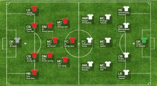 이 자료에서 AFC는 한국이 4-2-3-1 포메이션을 사용할 것으로 내다봤다. 최전방에 지동원이 서고 2선에는 손흥민과 구자철, 이재성이 받칠 것으로 봤다.