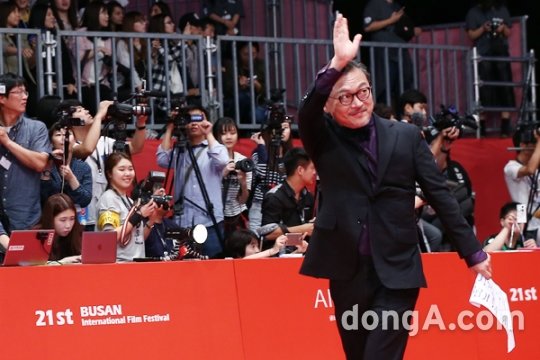 배우 김의성이 6일 오후 부산 해운대구 영화의 전당에서 열린 '제21회 부산국제영화제(BIFF)' 개막식에 참석하고 있다.
