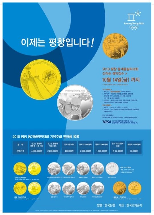 조직위 관계자는 “당초 국내 예약접수 후 남은 물량은 해외에 추가 배정할 계획이었지만, 평창대회에 대한 국민적 관심과 붐 조성을 위해 더 많은 국민들이 기념주화를 소장할 수 있도록 선착순 예약 접수기간을 연장한다”고 설명했다.