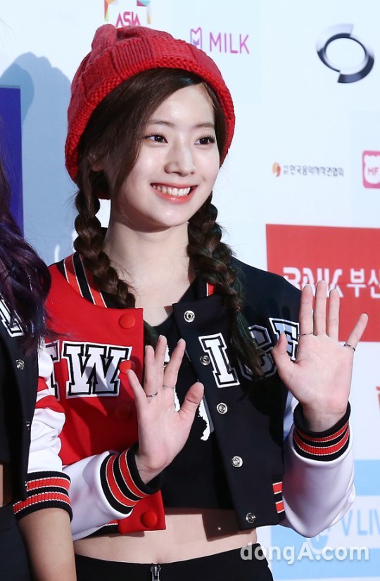 트와이스의 멤버 다현이 9일 오후 부산 아시아드주경기장에서 열린 2016 아시아송페스티벌에 참석해 포즈를 취하고 있다.