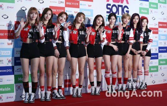 트와이스가 9일 오후 부산 아시아드주경기장에서 열린 2016 아시아송페스티벌에 참석해 포즈를 취하고 있다.