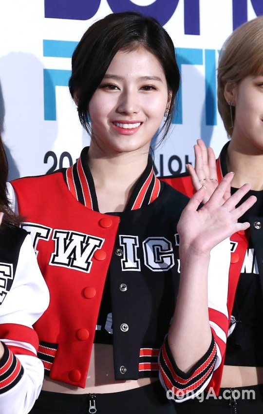 트와이스의 멤버 사나가 9일 오후 부산 아시아드주경기장에서 열린 2016 아시아송페스티벌에 참석해 포즈를 취하고 있다.