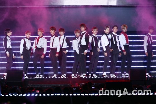 세븐틴이 9일 오후 부산 아시아드주경기장에서 열린 2016 아시아송페스티벌 무대에서 공연을 하고 있다.