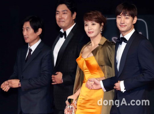 배우 김원해, 조진웅, 김혜수, 이제훈(왼쪽부터)이 9일 오후 경기 고양 일산 서구 킨텍스 제2전시장에서 열린 tvN 페스티벌 어워즈 레드카펫 행사에 참석하고 있다.