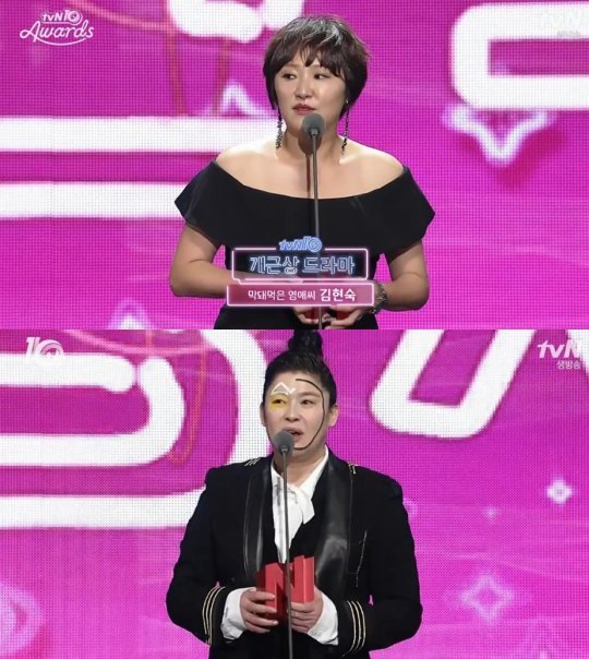 'tvN10페스티벌-tvN10어워즈' 김현숙과 이영자가 개근상을 받았다.