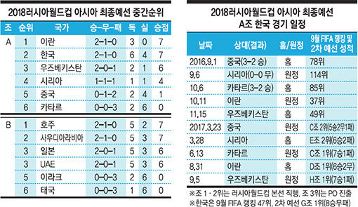 한국은 11일 오후 11시45분(한국시간) 테헤란 아자디 스타디움에서 이란과 2018러시아월드컵 아시아 최종예선 A조 4차전 원정경기를 치른다. 이란과의 역대 전적에서 9승7무12패로 크게 뒤져있는 한국은 ‘원정팀의 무덤’으로 불리는 아자디 스타디움에선 단 한 번도 승리한 적이 없다. 패배가 아니면 무승부에라도 만족해야 했다. 현재 A조 2위(2승1무·승점 7)에 올라있는 한국이기에 선두 이란(2승1무·승점 7)과의 맞대결은 러시아월드컵 본선 진출을 향한 여정에서 더없이 중요한 일전이다. 대표팀으로선 첫 이란 원정 승리를 이끌 ‘난세의 영웅’이 필요하다.