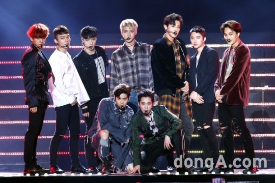 그룹 엑소가 9일 오후 부산 아시아드주경기장에서 열린 2016 아시아송페스티벌 무대에서 공연을 하고 있다.
