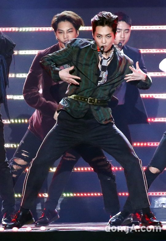 그룹 엑소가 9일 오후 부산 아시아드주경기장에서 열린 2016 아시아송페스티벌 무대에서 공연을 하고 있다.