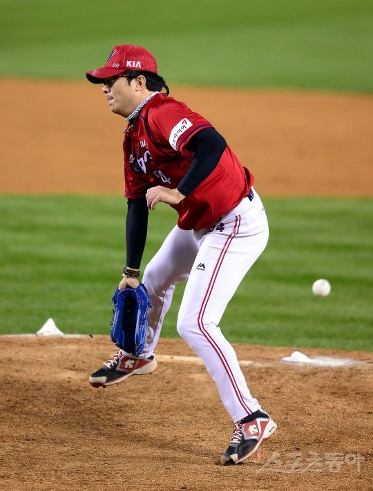 11일 서울 잠실야구장에서 ‘2016 타이어뱅크 KBO 리그’ 포스트시즌 와일드카드 결정전 2차전 KIA타이거즈와 LG트윈스 경기가 열렸다. 선발 투수로 등판한 KIA 양현종이 4회말 LG 히메네스에게 내야 안타를 허용하고 있다.