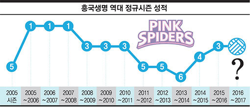 프로배구 V리그 출범 초창기 흥국생명은 여자부의 최강자로 통했다. 김연경(터키 페네르바체)~황연주(현대건설)의 좌우 날개가 보여준 파괴력은 실로 엄청났다. 그 둘의 존재만으로도 상대의 간담을 서늘케 하기 충분했다. 그러나 그 둘이 모두 떠나자 소위 말하는 암흑기가 찾아왔다. 2011~2012시즌부터 2014~2015시즌까지 포스트시즌(PS) 진출에 실패하며 ‘B클래스’의 오명을 썼다. 강팀의 이미지가 사라진 것은 순식간이었다.