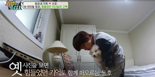 아셀을 재우고 난 뒤 반려견 수호와 함께 결혼 전 살던 자신의 방에 들어간 동호는 과거 ‘유키스’ 활동 시절의 사진을 보고 팬레터를 읽으며 추억에 잠겼다.