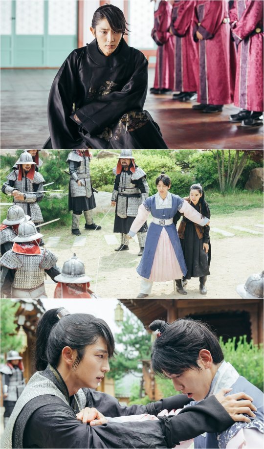 이런 가운데 공개된 스틸 속에는 4황자 왕소가 정종의 무리한 명령에 무릎을 꿇고 있는 모습과 함께, 황군에게 둘러싸인 10황자 왕은 부부의 위기의 순간이 포착됨과 동시에 눈물을 머금은 4황자 왕소와 10황자 왕은의 애달픈 대면이 담겨 있어 눈길을 사로잡는다.