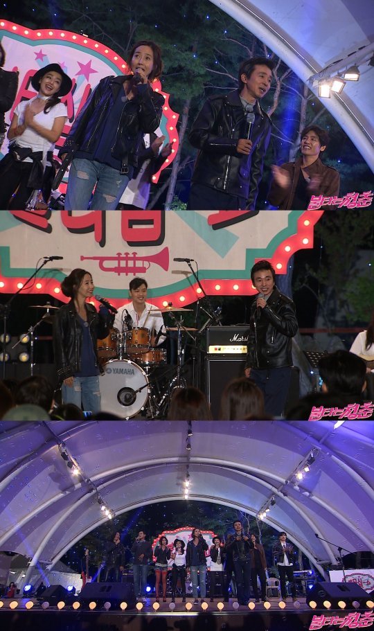 이후 공연이 막바지에 이르고, 인사를 하러 올라온 멤버들을 향해 관객들은 ‘강수지’와 ‘보랏빛 향기’를 연신 외쳐 특별한 앵콜 무대가 꾸며졌다. 강수지의 노래가 시작되자 수줍게 마이크를 든 김국진이 코러스를 더하며 둘만의 찰떡 호흡을 자랑해 현장을 핑크빛으로 물들이며 공연을 마무리 했다.