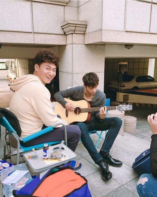 서인국은 17일 자신의 인스타그램에 MBC 드라마 ‘쇼핑왕 루이’의 촬영장 사진을 공개했다. 사진 속 서인국은 의자에 앉아 기타 연주에 푹 빠진 듯 사뭇 진지한 모습이었다. 그런 서인국의 옆에서 오대환은 환하게 웃으며 카메라를 응시했다.