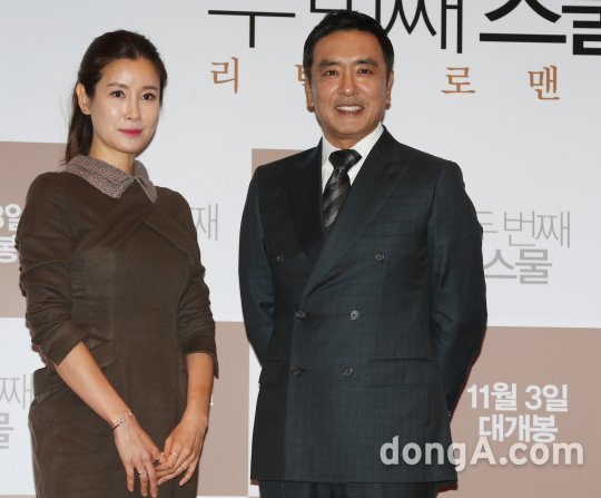배우 이태란(왼쪽)과 김승우가 17일 오후 서울 광진구 한 멀티플렉스에서 열린 영화 '두 번째 스물' 언론시사회에서 포토타임을 하고 있다.