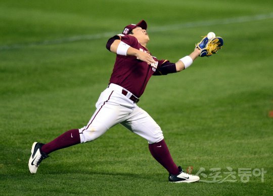 17일 서울 잠실야구장에서 ‘2016 타이어뱅크 KBO 리그’ 준플레이오프 4차전 넥센히어로즈와 LG트윈스 경기가 열렸다. 5회말 무사 만루 넥센 윤석민이 LG 채은성의 파울볼을 놓치고 있다.