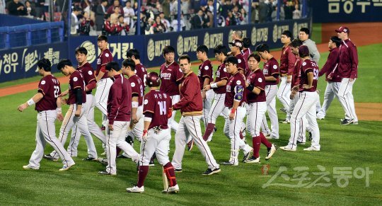 17일 서울 잠실야구장에서 ‘2016 타이어뱅크 KBO 리그’ 준플레이오프 4차전 넥센히어로즈와 LG트윈스 경기가 열렸다. 플레이오프 진출에 실패한 넥센 선수들이 경기장을 빠져나가고 있다.