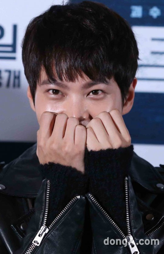 배우 주원이 19일 오후 서울 용산구 한 멀티플렉스에서 열린 영화 '특근' 언론시사회에서 취재진의 질문을 듣고 있다.